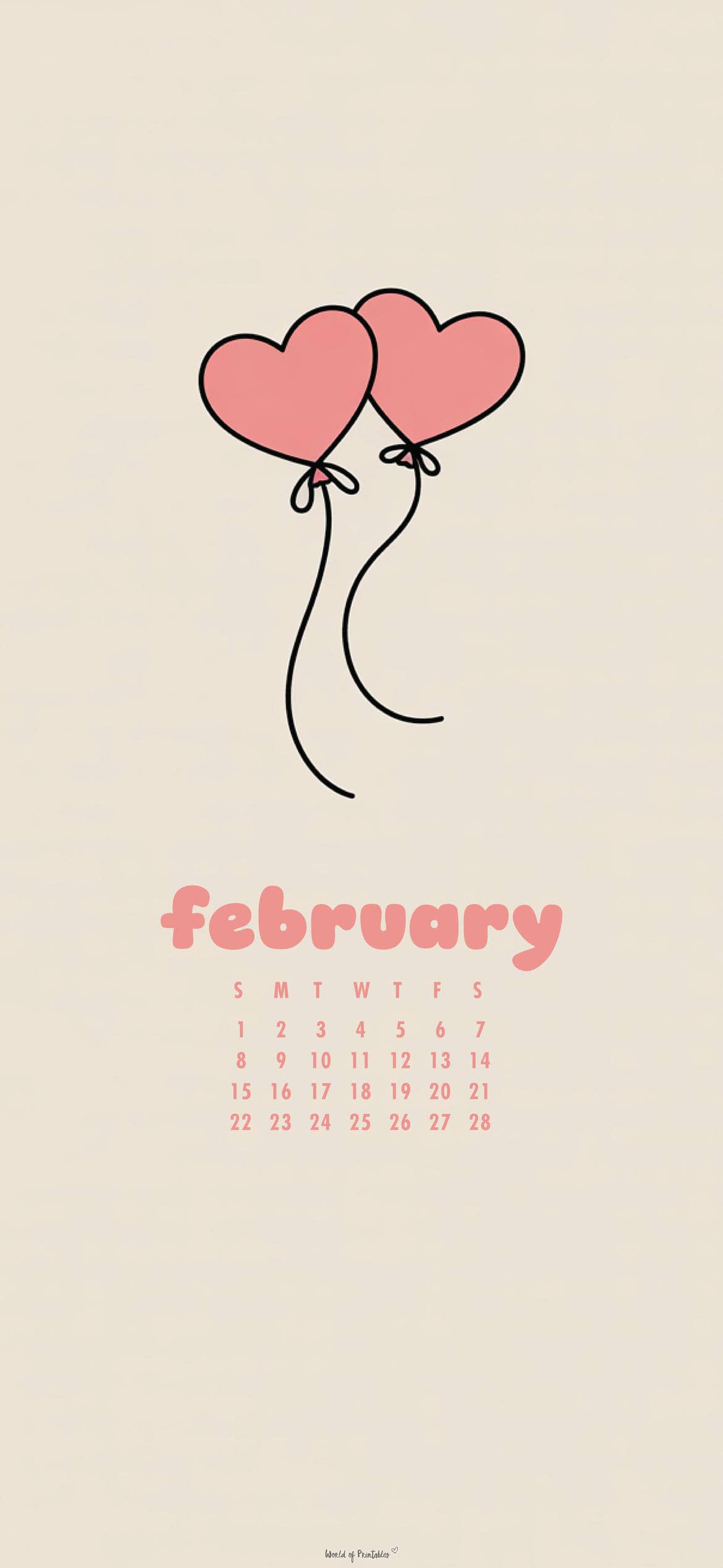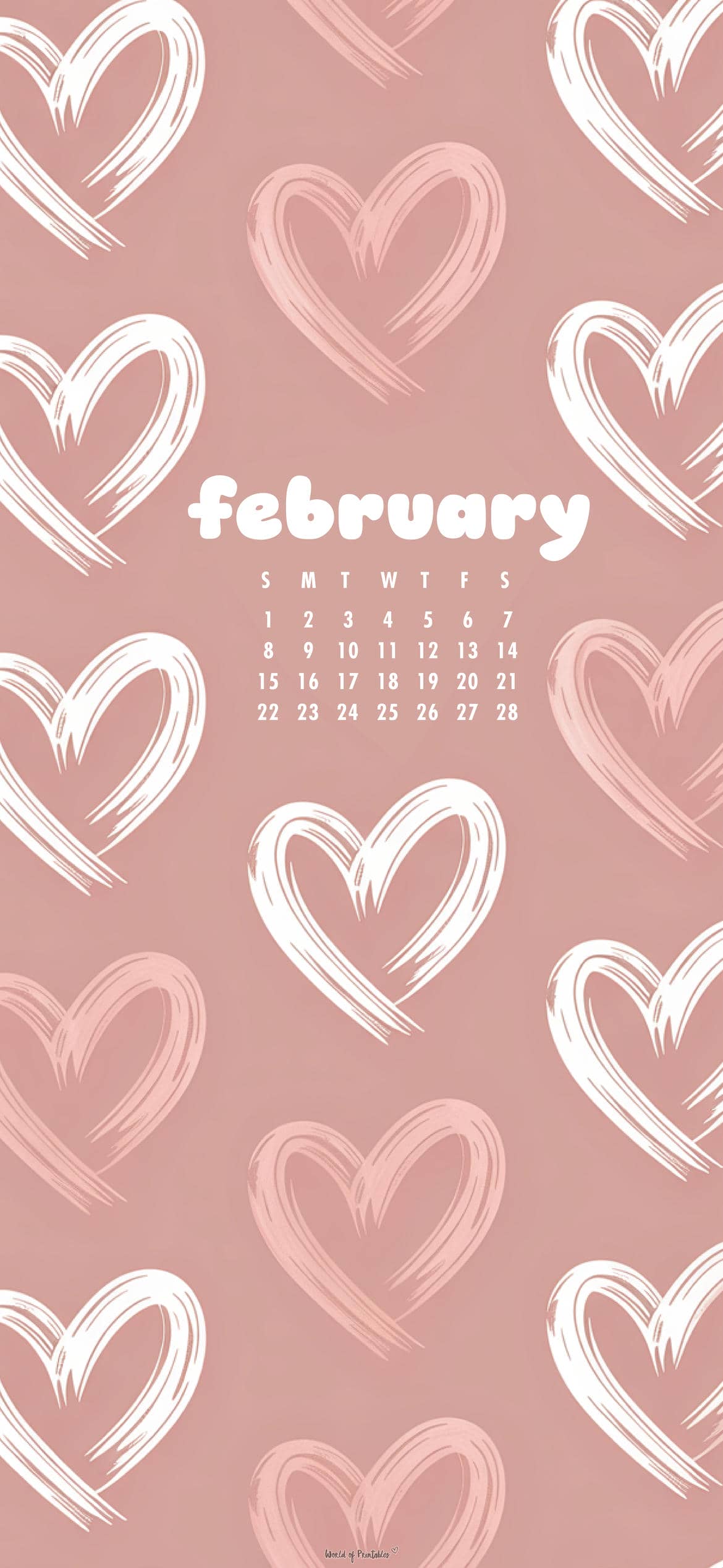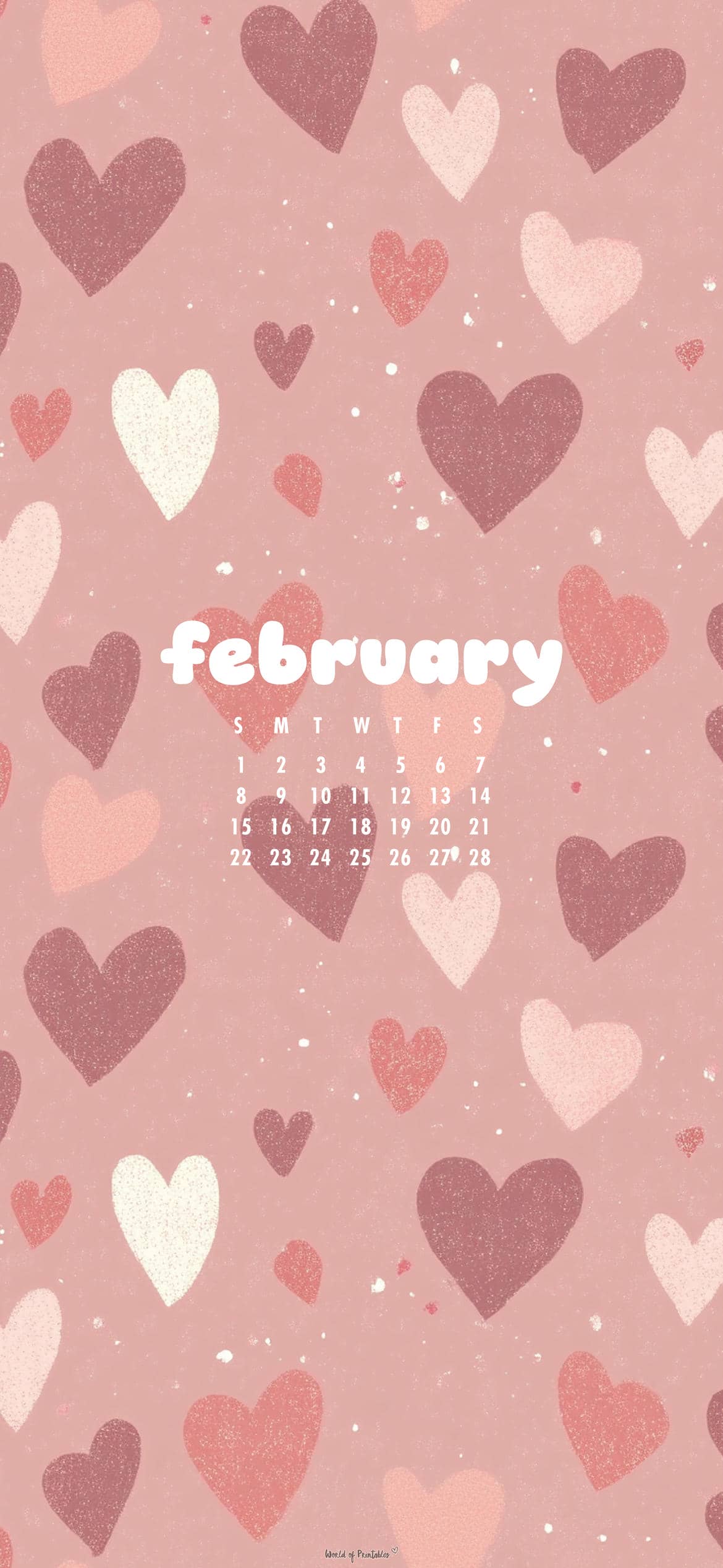 Every wallpaper has a small February 2026 calendar built in, so you can quickly check dates without opening an app. The styles are a mix of cozy winter, soft Valentine inspired designs, cute girly wallpapers, and simple minimal layouts that keep your icons easy to see.