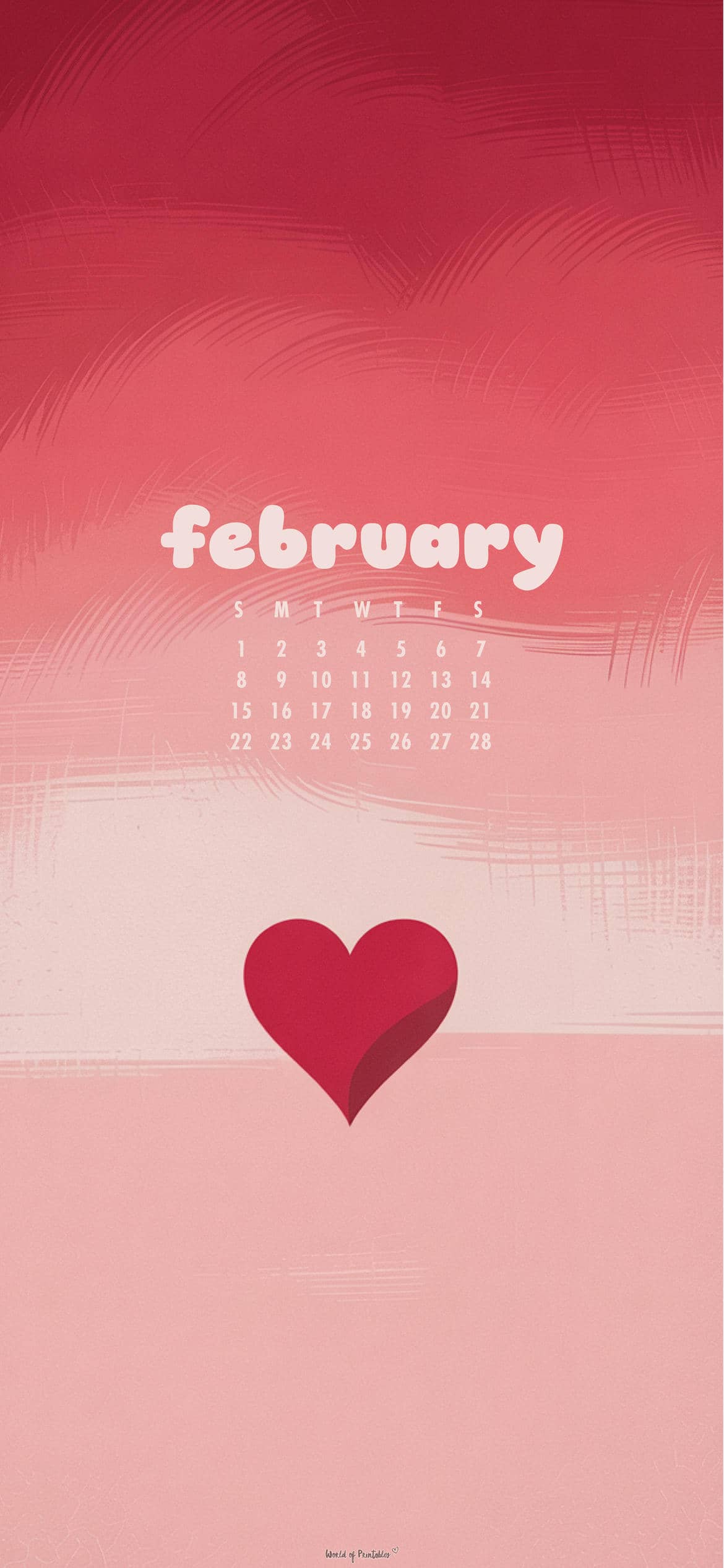 Scroll through these free February 2026 phone calendar wallpapers, perfect for iPhone and Android lock screens. The designs are tall, high resolution and mostly minimal, with a built in February calendar that keeps your screen cute and still clear enough for apps and widgets.