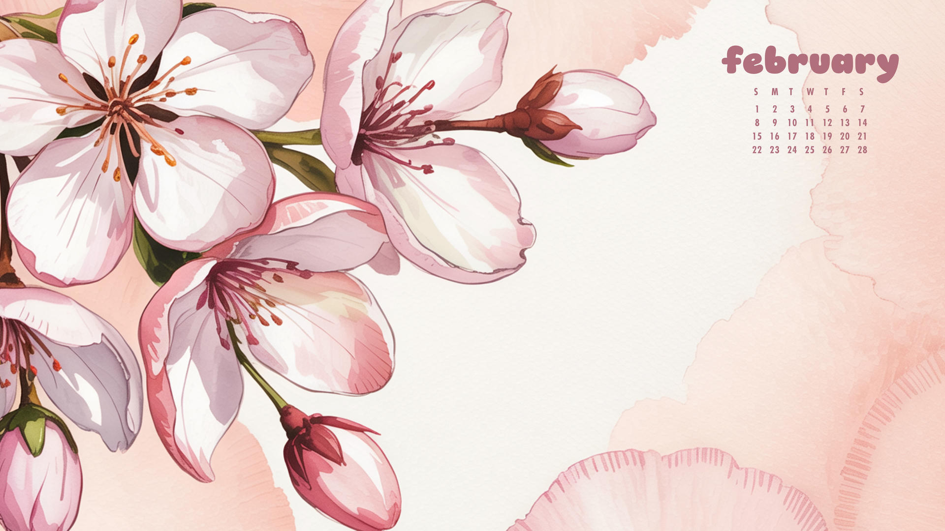 Browse these free February 2026 desktop calendar wallpapers, designed for laptops and monitors in popular widescreen sizes. Each background includes a small February calendar and a clean area for your icons so your screen stays pretty and easy to use.