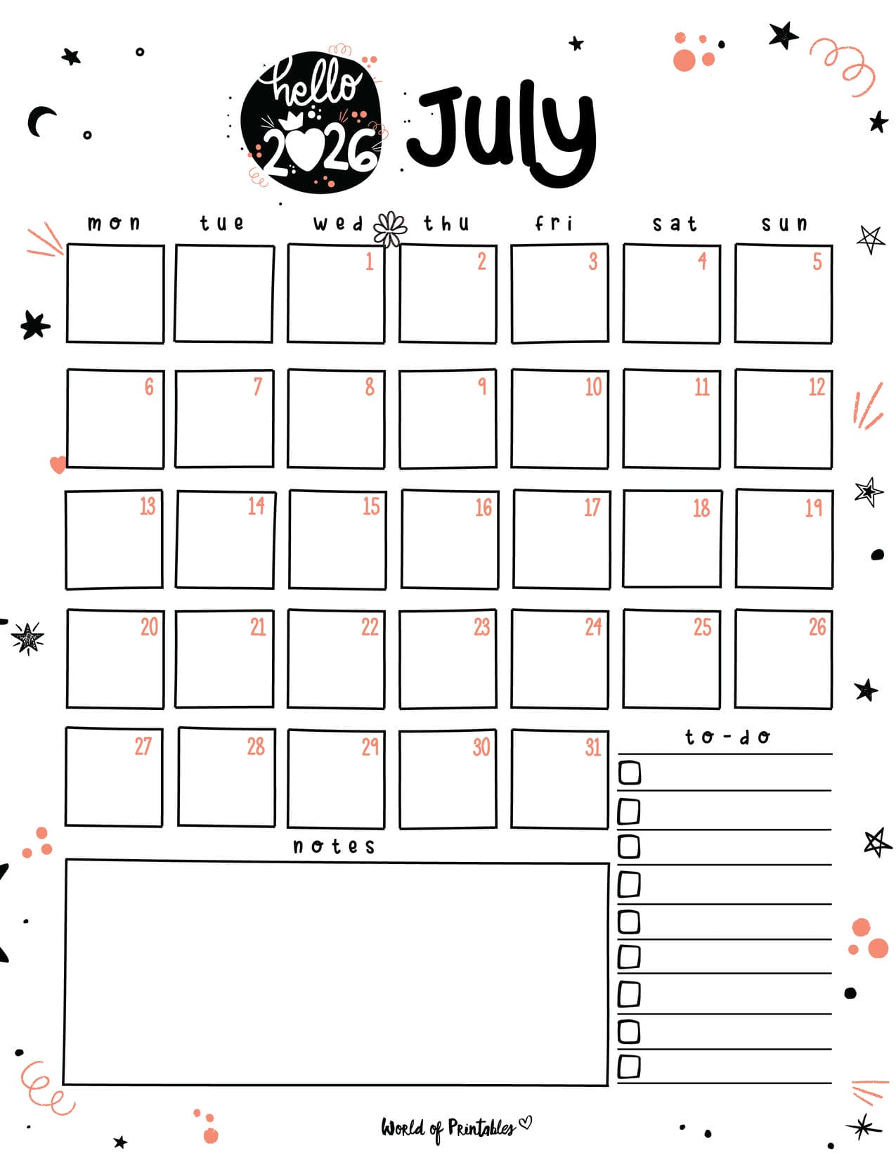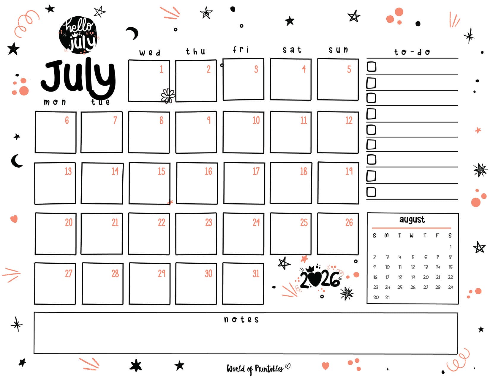 Click to get your free totally cute July 2026 to do list printable.