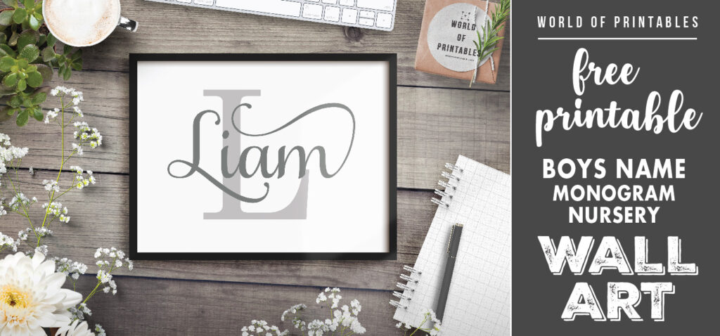 This is one of our ever-popular prints on the site. This free printable Boys Name Monogram Nursery Art Print is elegant and good looking so will suit a child of any age. This free printable is available in 50 names, check below to see if yours is there!