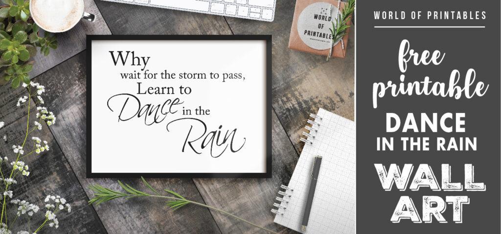 Use this free printable Dance In The Rain Art Print to spruce up your home today! You can even gift this print to someone you love!