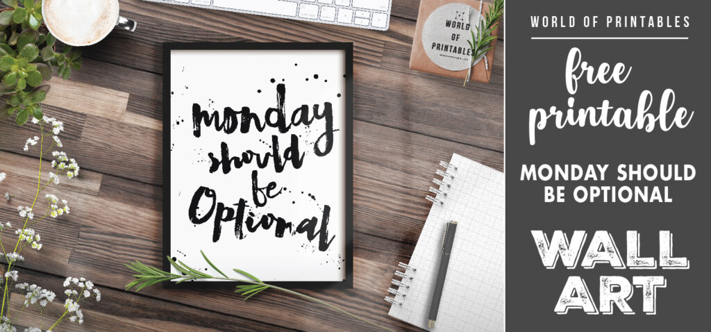 This free printable Monday Should Be Optional wall art print looks great and would definitely compliment any decor. It is also a great option as a gift.