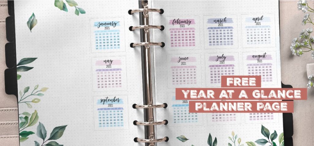 This Free Yearly Planner Insert On Two Pages is so popular and it is so easy to see why! It looks so gorgeous with its botanical leaves and miniature calendars.
