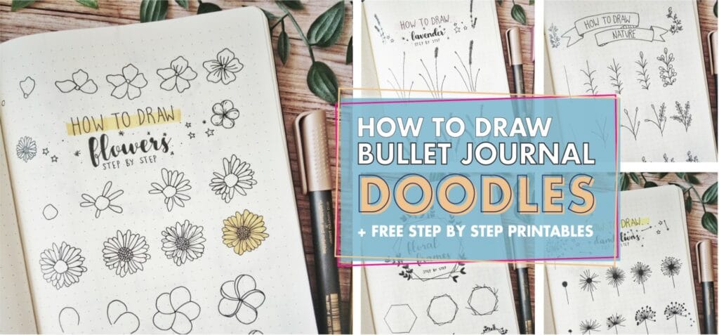 These three botanical doodles are so pretty and are easy to draw. Follow our simple step by step guide to learn how to draw these lovely plants for your bullet journal. You can print the free doodle sheet to practice your plant doodles and also practice drawing the banner too!
