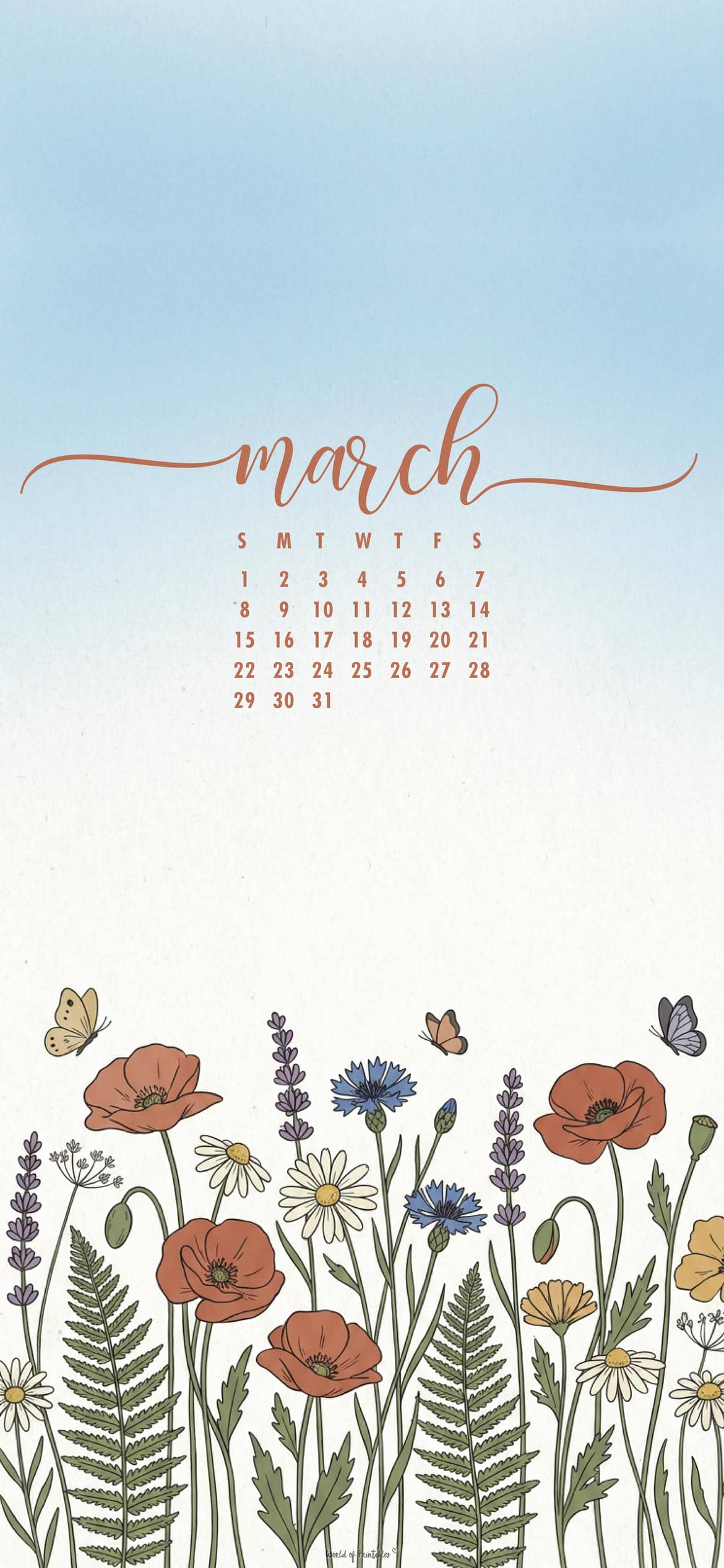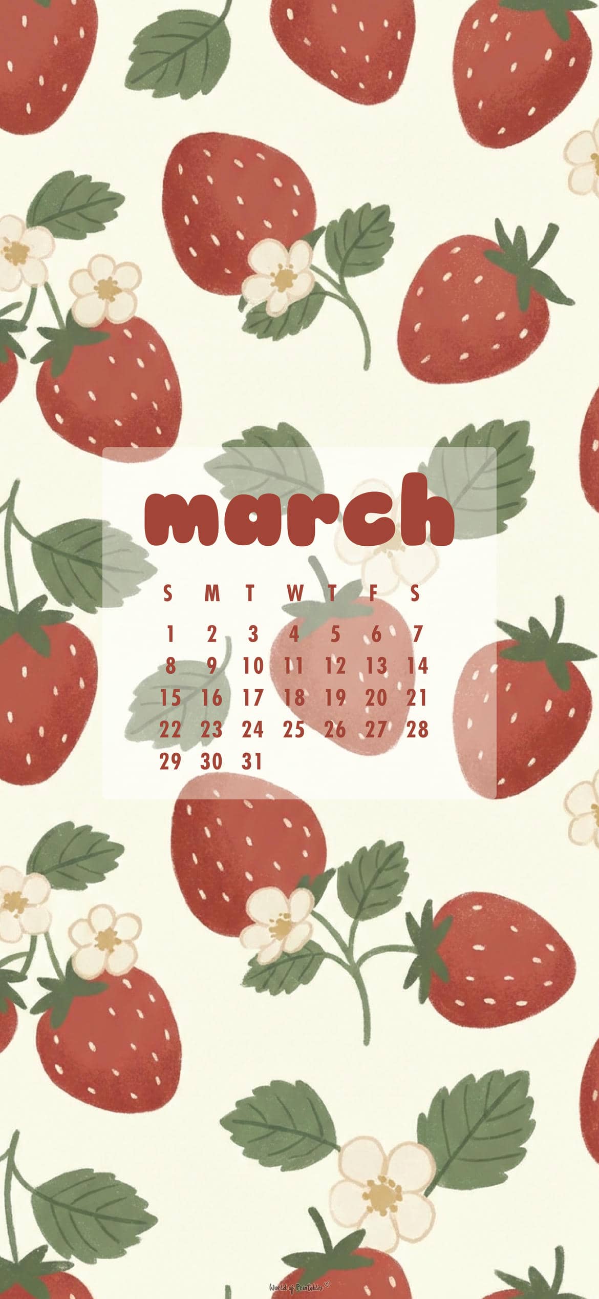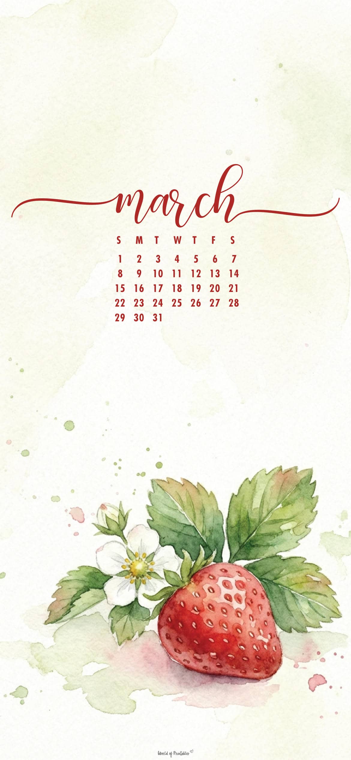 March 2026 phone calendar wallpapers