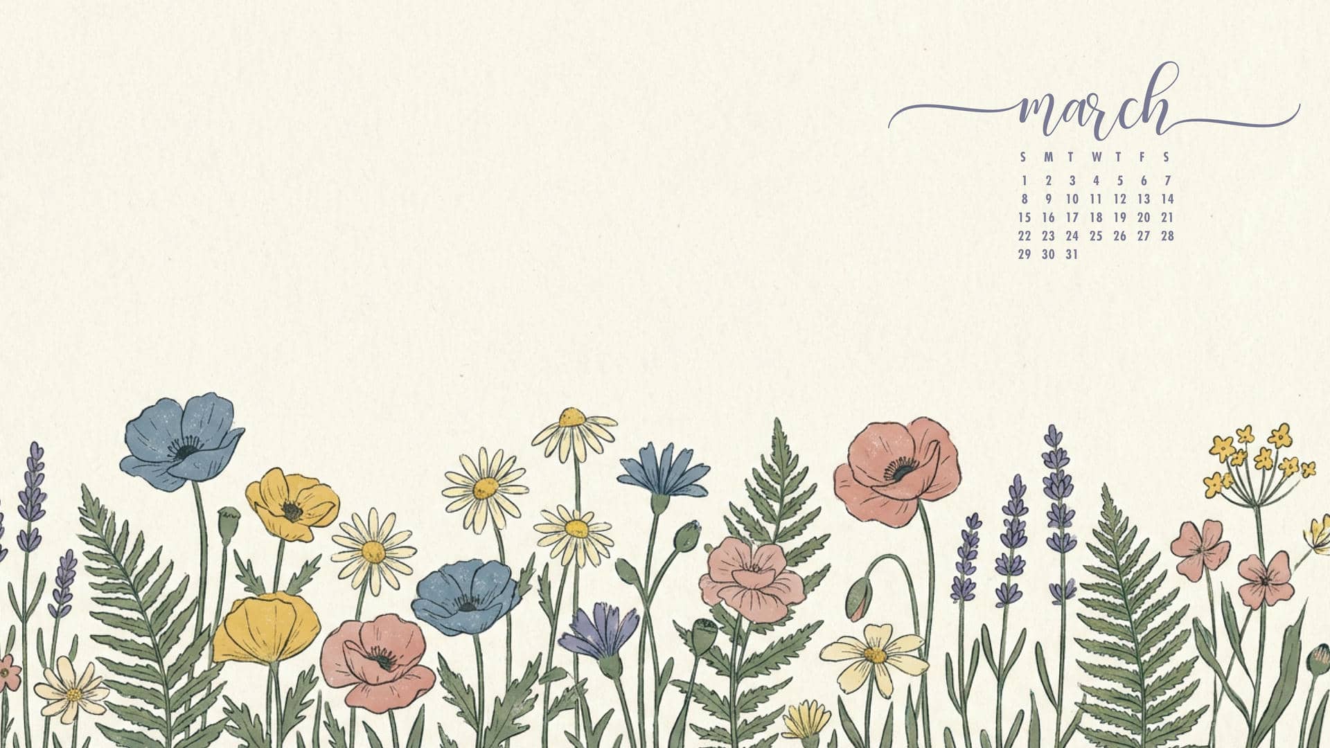 March 2026 desktop calendar wallpapers