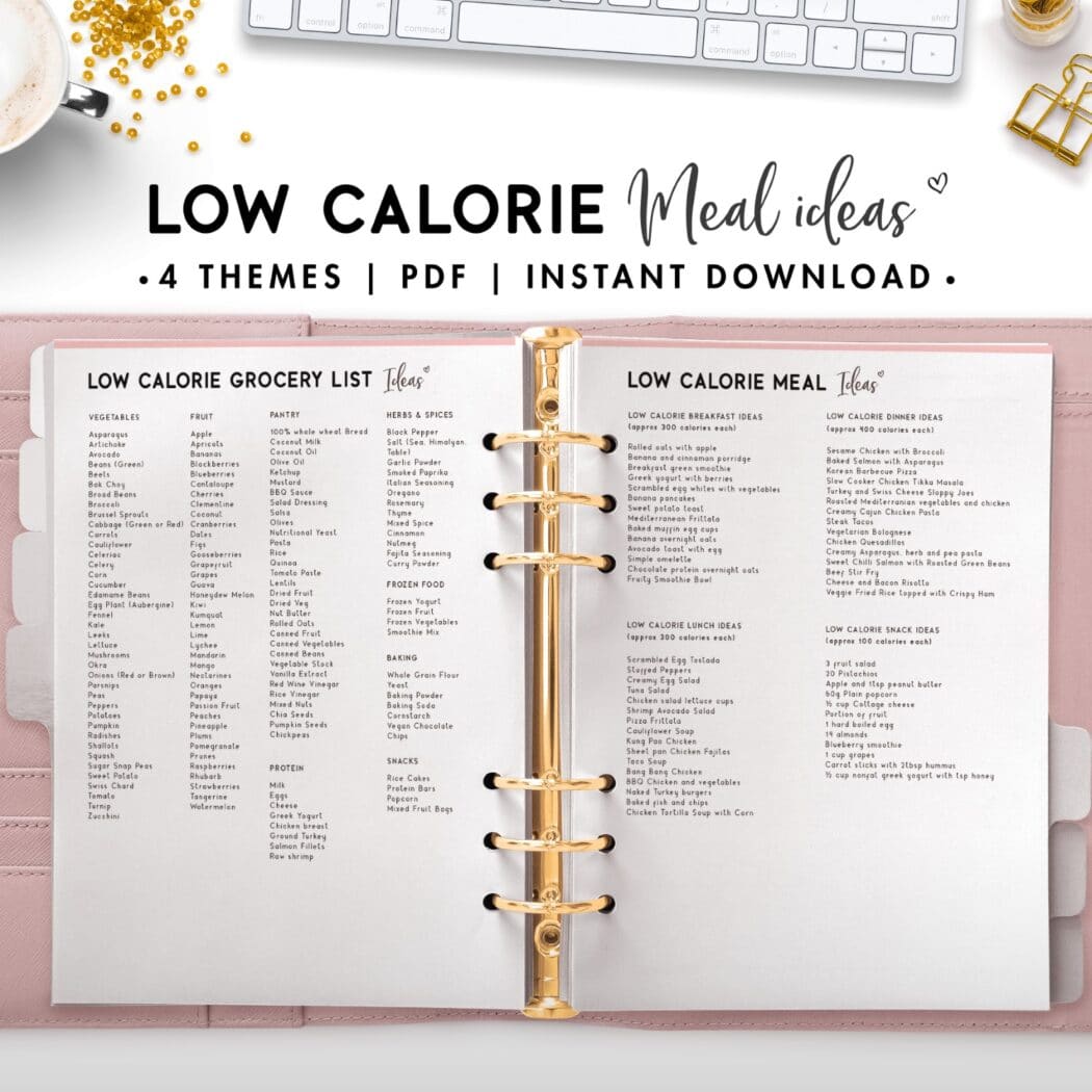 The Low Calorie Grocery List and Meal Ideas are the perfect printable for any one following a low calorie diet and they come in four styles – Botanical, Classic, Cursive and Soft. They are also included in The Meal Planner.