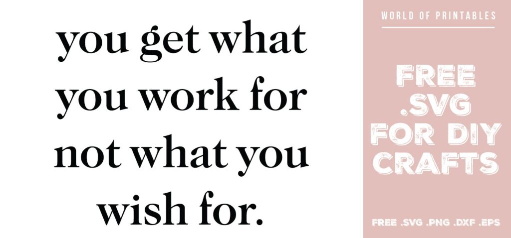 This contemporary looking You Get What You Work For Free SVG File is perfect if you want to create motivational crafts or Cricut projects.